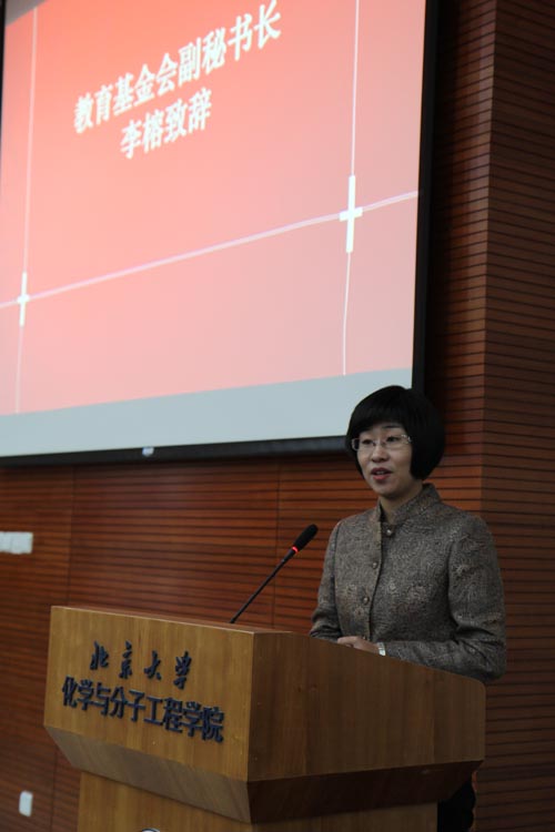 Ms. Li Rong, Undersecretary of Education Foundation expressed his gratitude towards scholarship donors. He also recognized the achievements of College of Chemistry and Molecular Engineering while hoping the college could achieve more in research studies, academic innovation and talent education, etc.
