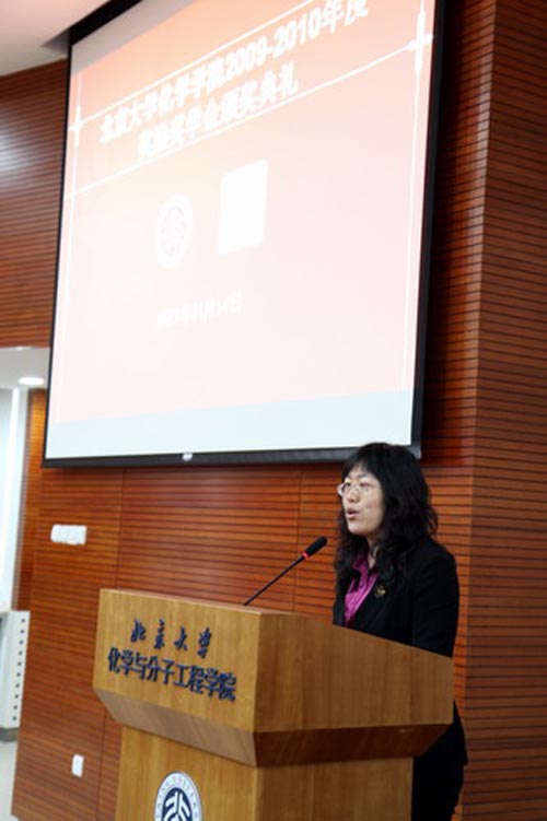 Later, Party Secretary Liu Huwei made a speech. He said, the establishment of scholarships in College of Chemistry and Molecular Engineering assured the studying conditions of all students and encouraged the students to finish their schooling with best scores. He hoped that, the award-winner students could inherit and develop the college tradition, studying harder for a better future of College of Chemistry and Molecular Engineering.