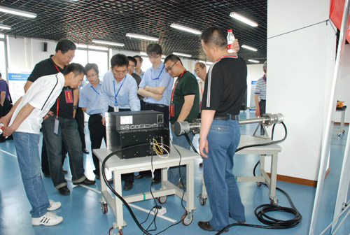 With General Manager Ying Gang and Vice General Manager Wang Yaobins guide, Liu Qinglin with his accompanies visited the exhibition hall, chemistry laboratory and assembly line of Skyray. “The installation and production of each instrument has been checked carefully under the quality control procedures and after each step they will check it repeatedliy and carefully fill in the “instrument testing forms” to ensure every detail. Besides, the hyperbaric testing instrument and bonder machine developed by Skyray also help make sure the quality control of the instruments.” Said Ying Gang.