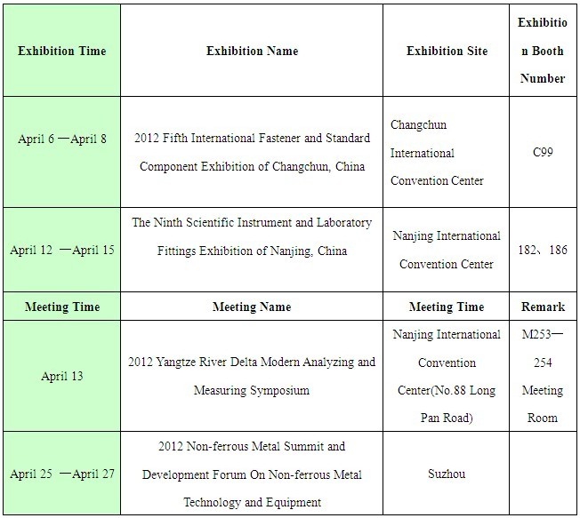 The Advance Notice of Skyray Instrument’s Exhibitions and Conferences in April of 2012